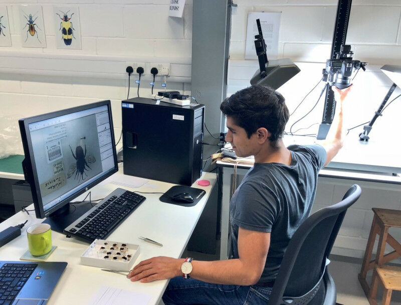 Dr Andres Arce working with specimens at the National Museums Scotland. Credit: Ashleigh Whiffin