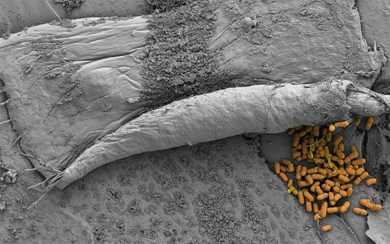 Artificial bladders shine light on bugs that cause urinary tract infections - Bacteria hiding beneath exfoliating bladder epithelium. Credit: Carlos Flores & Jennifer Rohn.