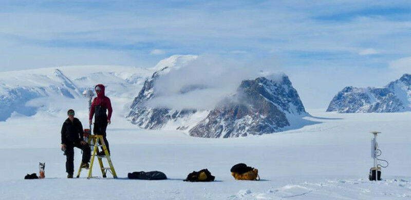 In 2020, the COVID-19 pandemic brought their fieldwork to a screeching halt. When the team finally made it back to their field site in November 2021, only two GPS sensors and one timelapse camera remained; two other GPS and all water pressure sensors had been flooded and buried in solid ice. Fortunately, the surviving instruments captured the vertical and horizontal movement of the ice’s surface and images of the meltwater lake that formed and drained during the record-high 2019/2020 melt season.