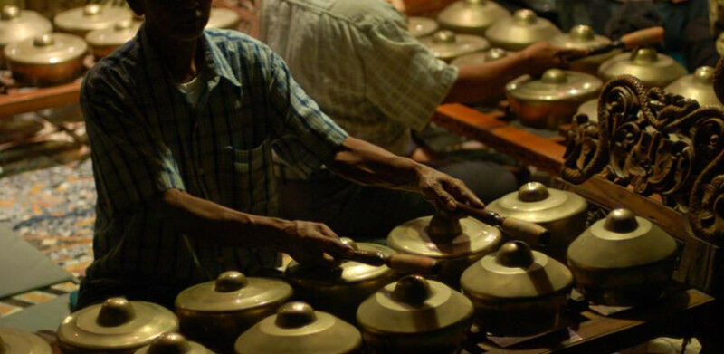 A man playing a bonang Credit: Andrew Otto via Flikr under a CC license