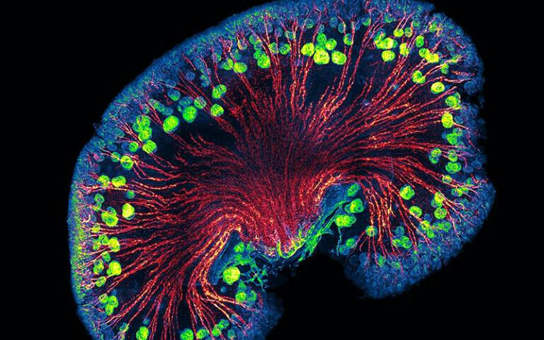 A confocal microscopy image of the urinary filtration apparatus of the developing kidney. Credit: David Long, Claire Walsh and Danyal Jafree/UCL. Focusing on rare conditions could significantly reduce the burden of kidney disease on both patients and the NHS, according to a major new study led by UCL and the UK Kidney Association. The study, published in The Lancet to mark World Kidney Day, draws on the largest rare kidney disease dataset ever created. It found that patients with rare kidney diseases are 28 times more likely to experience kidney failure than those with chronic kidney disease (CKD), but are less than half as likely to die before kidney failure treatment is needed. The results suggest that additional focus on treating rare kidney diseases, many of which have new therapies in development or already available, could disproportionately alleviate the overall demand for expensive and hazardous dialysis and kidney transplantation treatments. The authors hope that the research will reframe perceptions of chronic kidney disease, rare diseases and kidney failure among patients, caregivers, regulators, healthcare providers, and researchers.