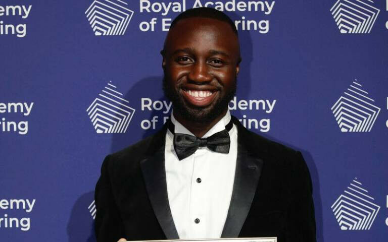 George Imafidon Mechanical Engineering alumnus George Imafidon has been named a Young Engineer of the Year by the Royal Academy of Engineering, which has also awarded him the Sir George Macfarlane Medal. The Academy awards the Young Engineer of the Year prize to those who have demonstrated excellence in the early stage of their career. George, who graduated with a First Class MEng in 2020, was soon selected to join the Hamilton Commission, set up by Formula One champion Sir Lewis Hamilton, which works to improve the representation of Black people in motorsport. He has also worked with companies including Google, Rolls-Royce and J.P. Morgan. George is now a performance engineer with Sir Lewis' Team X44 which competes in the world's most remote locations as part of the Extreme E electric racing series. He is also the co-founder of award-winning app Motivez, which works to improve access to STEM careers for 14- to 25-year-olds from underrepresented backgrounds through coaching, career development programmes and events. So far, the platform has directly supported over 8,000 young people into their chosen career.