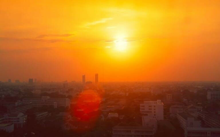 Thailand city view in heatwave summer season high temperature from global warming effect