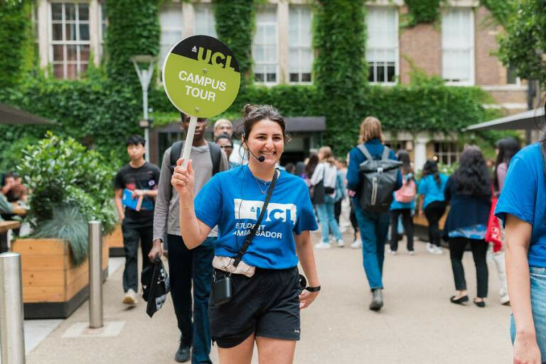 Student Ambassadors smiling and holding 'Campus Tour?' sign As a VPEE Student Ambassador you can take campus tours, support us on our Open Days, create social media content, present at virtual Offer Holder events and so much more. A fun way to earn money with no minimum time commitment! To find out more about the role, please take a look at the job description which contains information on the person specification, tasks and responsibilities, payment, Tier 4 visa information and a link to apply. The deadline to apply is Monday 23 October 2022 23:59 - University College London, Gower Street, London, WC1E 6BT (0) 20 7679 2000