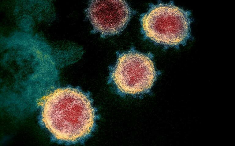 A microscopic vies of four coronaviruses.Novel Coronavirus SARS-CoV-2 Credit: NIAID-RML via Flickr , CC BY 2.0