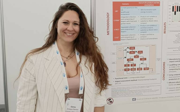 I am a research fellow, part of the Plastic Waste Innovation Hub , where my role is to apply Life Cycle Assessment (LCA), a methodology used to calculate the environmental impacts of products, processes, or services. I apply LCA to absorbent hygiene products (i.e. baby nappies) to estimate the environmental performance of the whole product life cycle, from their production to their disposal.How long have you been at UCL and what was your previous role?