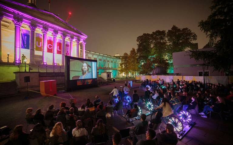 Image of UCL’s annual bike-powered cinema during the Welcome Week - which saves energy through people power.