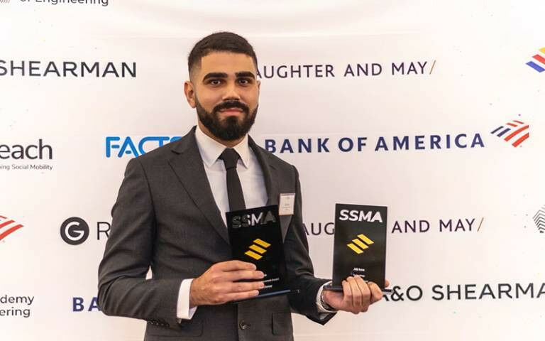 At an awards ceremony hosted at London’s Manor House, Ali won both the Outstanding Achievement Award, which celebrates the student scoring the highest overall during the judging process, and the Tech Sector Award, which recognises outstanding achievements in the sector while at university.