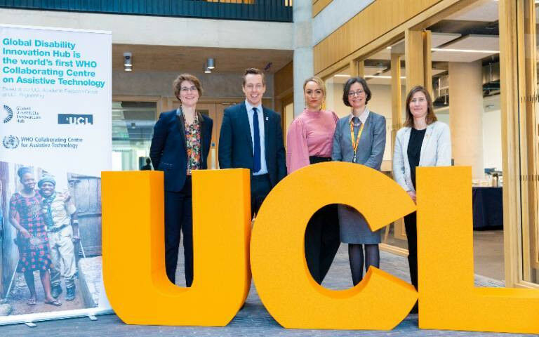 Tom Pursglove MP with leaders from UCL East and GDI Hub at the the official opening of GDI Hub in 2022 A UK government body has announced further investment into assistive technology projects at UCL's Global Disability Innovation Hub, to support millions more people with life-changing accessible technology. The £31 million for the UCL-led AT2030 programme comes from UK Aid, a funding programme that is part of the UK's Foreign, Commonwealth & Development Office, which helps to tackle the global challenges of our time. AT2030 is part of UCL's Global Disability Innovation Hub (GDI Hub), based at the new UCL East campus on Queen Elizabeth Olympic Park in Stratford, East London. The additional funding will allow the programme to continue to support governments in developing their policy and practice frameworks, ensure the physical and digital environments are accessible for assistive technology (AT) users, and trial a scaled version of innovation support. AT2030 will also be developing tools which make better use of data, building on the strengths of UCL Computer Science in Human-Computer Interaction and AI, working with partners to develop tools to allow for more affordable and informative data sets for the second Global Report on AT. UCL President & Provost, Dr Michael Spence, said: "The Global Disability Innovation Hub is an immensely valuable part of UCL, enabling us to use our institutional strengths in technology, innovation, design and social research, while working alongside partners in London and across the globe, to improve health outcomes and reduce inequalities.